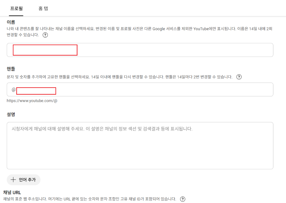 - 내 채널 → 채널 편집